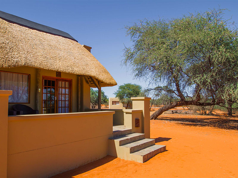 De Zebra Kalahari Lodge ligt aan de rand van de Kalahari zandduinen, ten oosten van Kalkrand, in het leefgebied van het San volk.