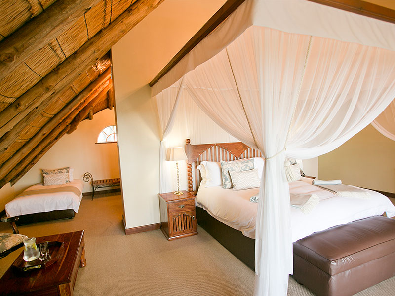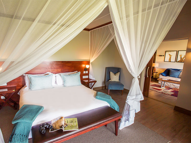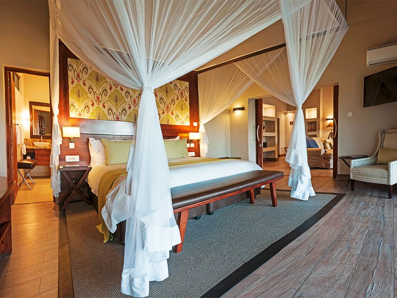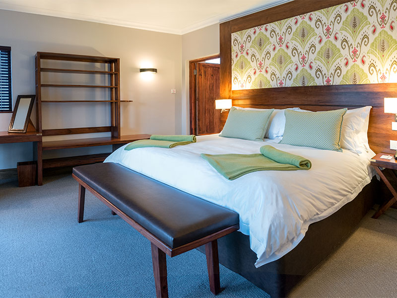 De lodge bestaat uit 32 standaard kamers en meerdere suites. De kamers zijn voorzien van airco, ventilator, satelliet-tv, koffie/ theefaciliteiten en een en-badkamer met bad, aparte douche en toilet. De openslaande deuren leiden naar de tuin of het balkon.