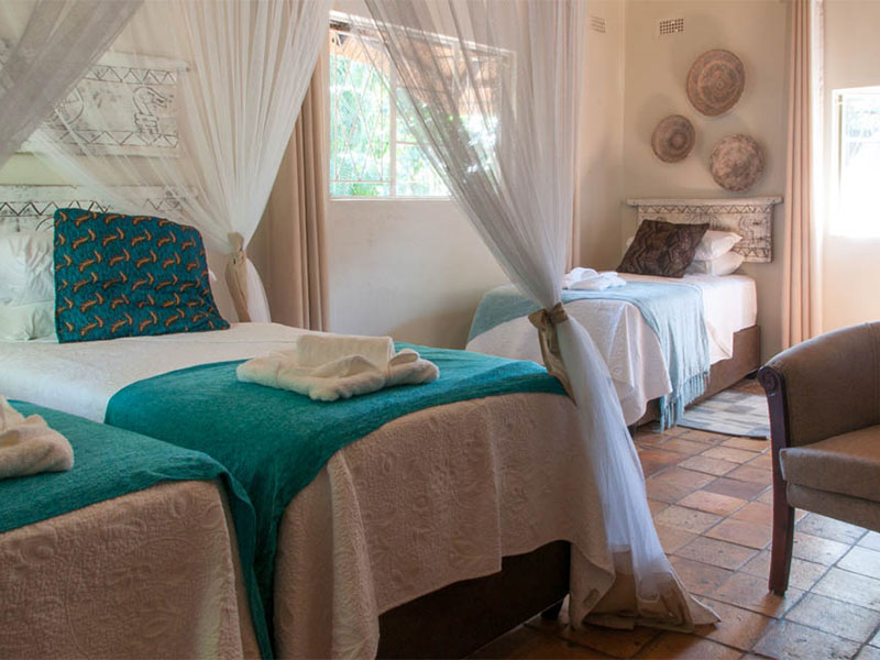 De lodge bestaat uit 25 sfeervolle kamers, waaronder ook een familiekamer, een Executive Room en een Honeymoon Suite. Alle kamers zijn verschillend ingericht en voorzien van een en-suite badkamer met douche en toilet. Verder is er een bar en een gezellige ‘boma’ waar het ontbijt geserveerd wordt. In de tropische tuin ligt een zwembad waar u heerlijk kunt relaxen.