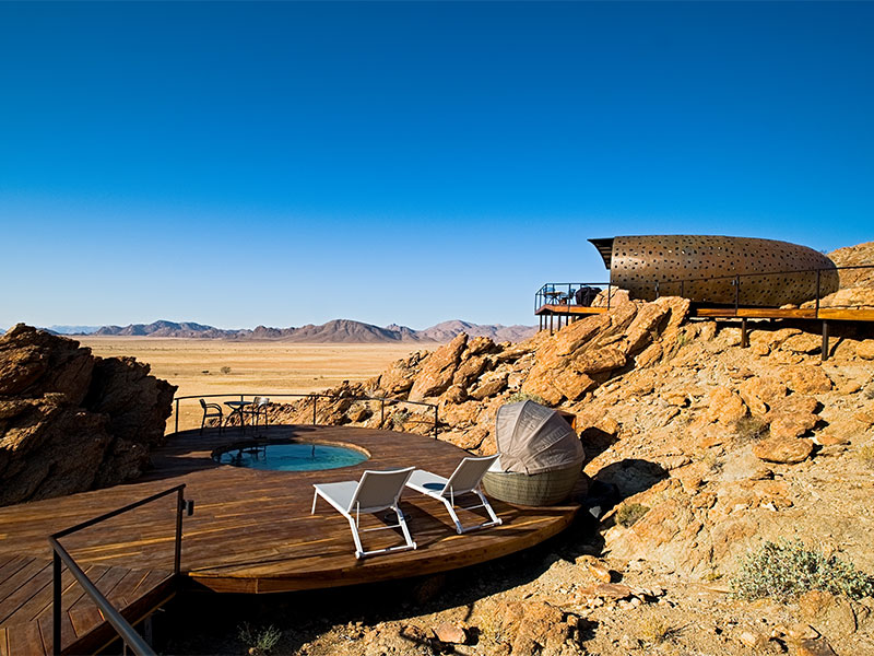 Omarm de romantische eenzaamheid en pracht van de Namib-woestijn bij Desert Whisper, een exclusieve intieme schuilplaats in het midden van de woestijn.