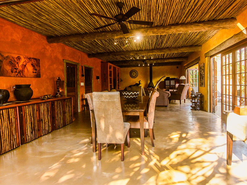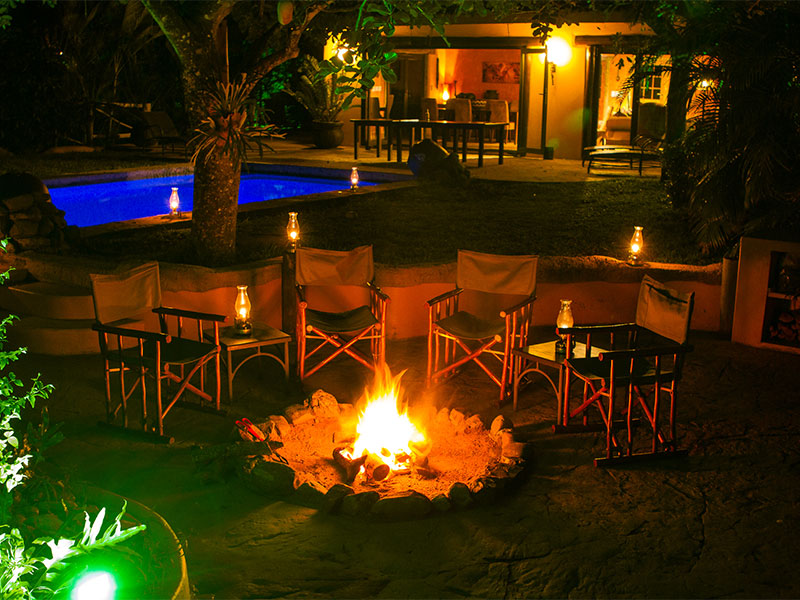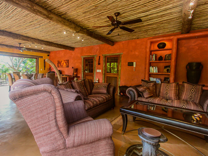 De lounge is voorzien van een volledige DSTV, gratis WIFI en een kleine bibliotheek waar u zich met een goed boek kan terugtrekken in de knusse sofa’s. De boma is de perfecte plaats om ’s avonds rond het vuur de verhalen van de dag te vertellen.
