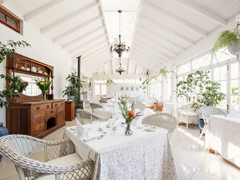 Het ontbijt is heerlijk uitgebreid en wordt geserveerd in de ontbijtruimte die uitkijkt over de tuinen. Lunches en diners worden alleen geserveerd op aanvraag.