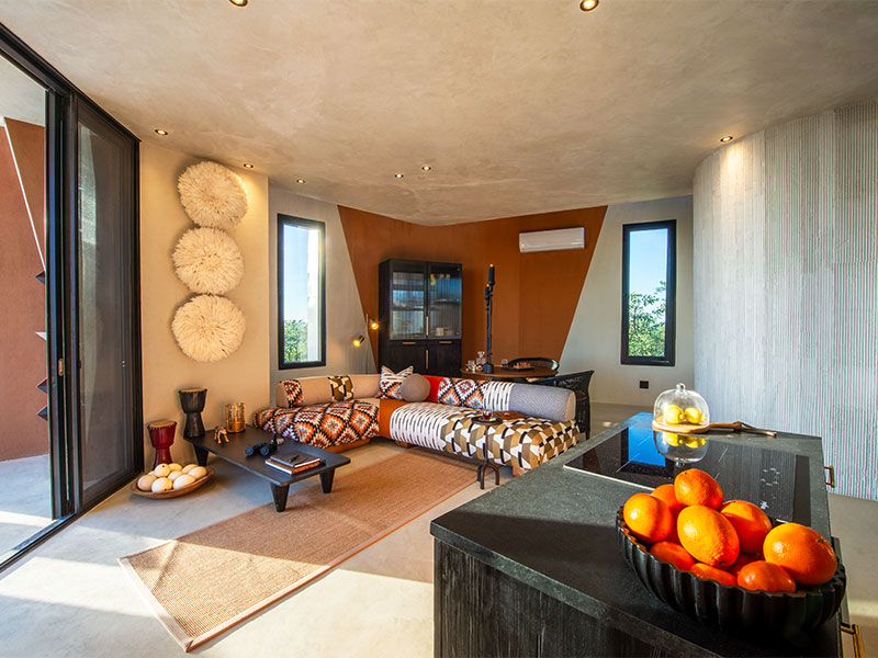 Uw suite is verdeeld over 2verdiepingen en stijlvol ingericht met een open keuken, eet- en loungegedeelte en een slaapkamer met en-suite badkamer. Verder beschikt u over airconditioning, een privébar, minibar, terras, barbecuefaciliteiten en een plunge pool met buitendouche.