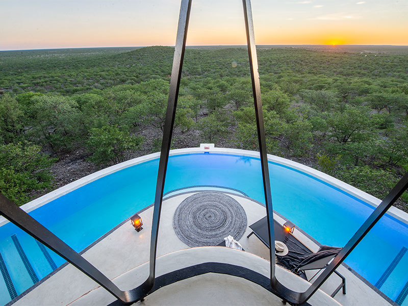The Ekipa Etosha Pod is volledig gericht op luxe, comfort en een unieke natuurbeleving midden in de Afrikaanse wildernis.
