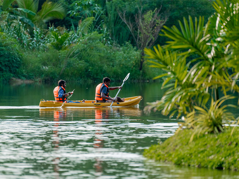 Er is ook een spa-gedeelte met Ayurvedische behandelingen, en het hotel kan activiteiten zoals safari’s, fietstochten en vogelen bij de nationale parken organiseren.