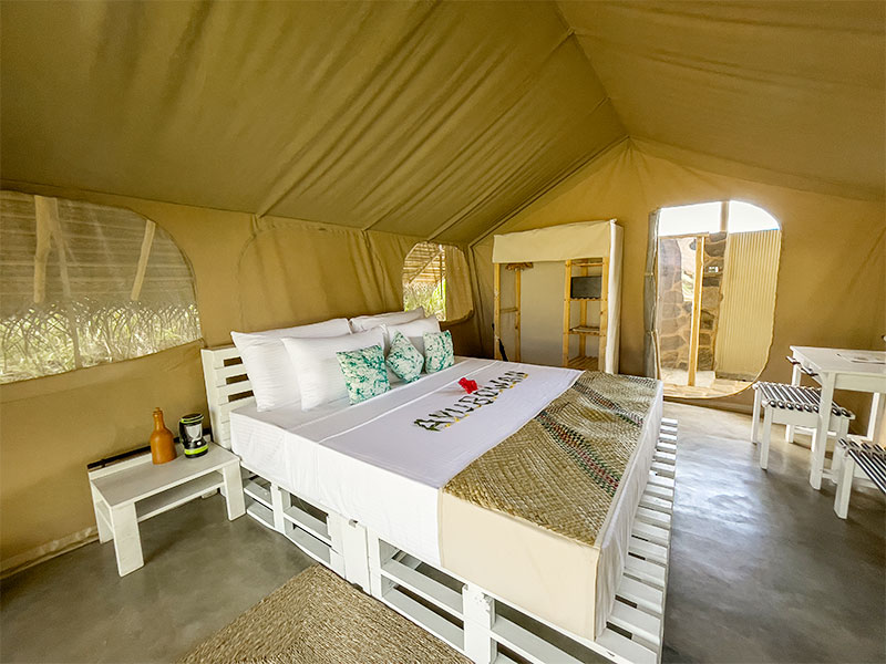 Alle tenten zijn comfortabel ingericht en voorzien van airconditioning, warm-/koudwaterdouche, thee-/koffiefaciliteiten, een kluisje en natuurlijke toiletten. U kunt ontspannen aan het infinity-zwembad, genieten van maaltijden in het restaurant met lokale en westerse gerechten of deelnemen aan activiteiten zoals organisch tuinieren, kooklessen met de Vedda-gemeenschap en safari’s in het park.