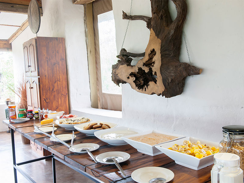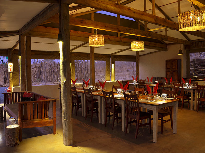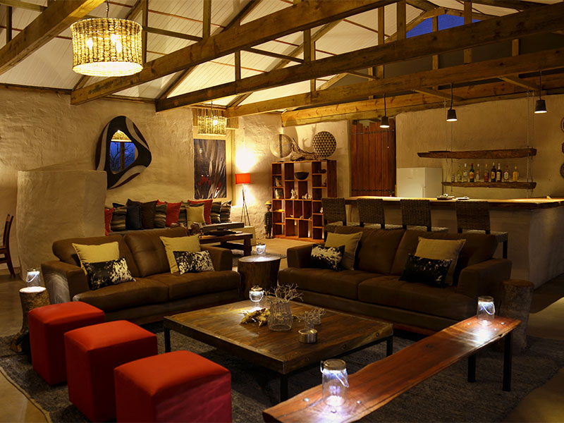 The lodge boasts a large open-plan main area featuring a cosy arrangement of couches along with a bar, dining area and reading corner and opens up onto an inviting boma area. From the main area, a small pathway leads down to the swimming pool with viewing deck onto a private waterhole.