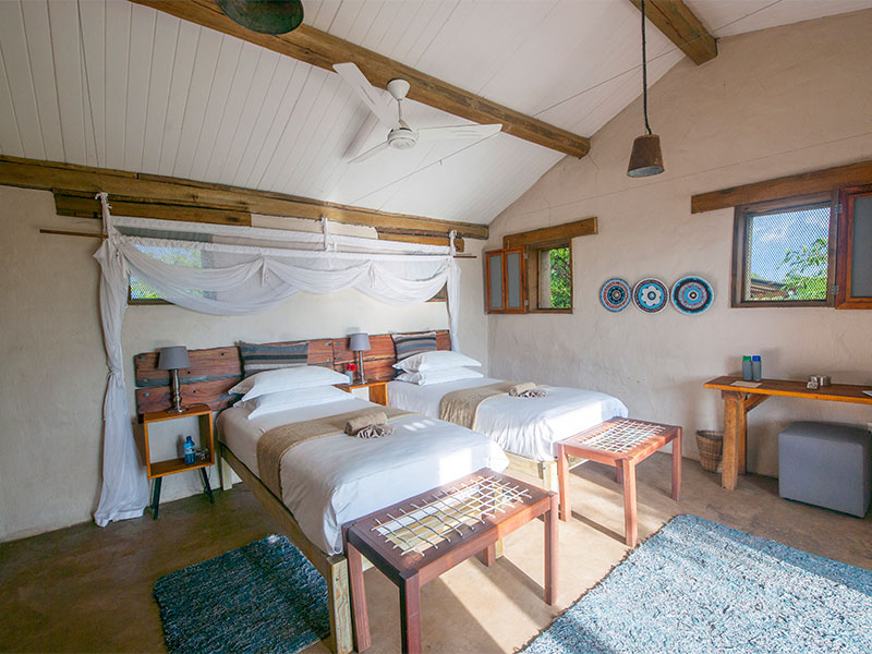 With 12 rooms, Chobe Elephant Camp can comfortably accommodate 24 guests. All rooms are en-suite with both indoor and outdoor showers.