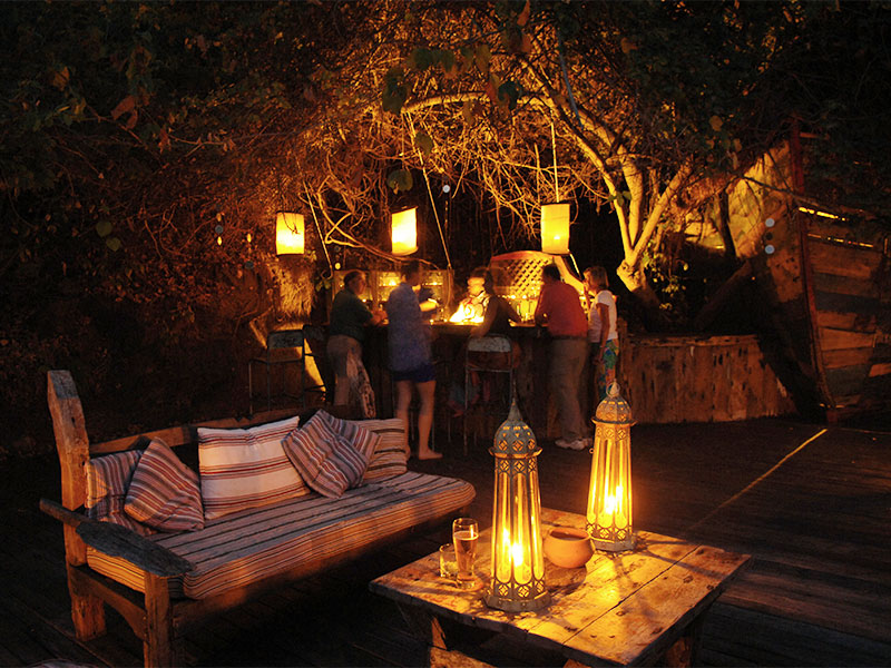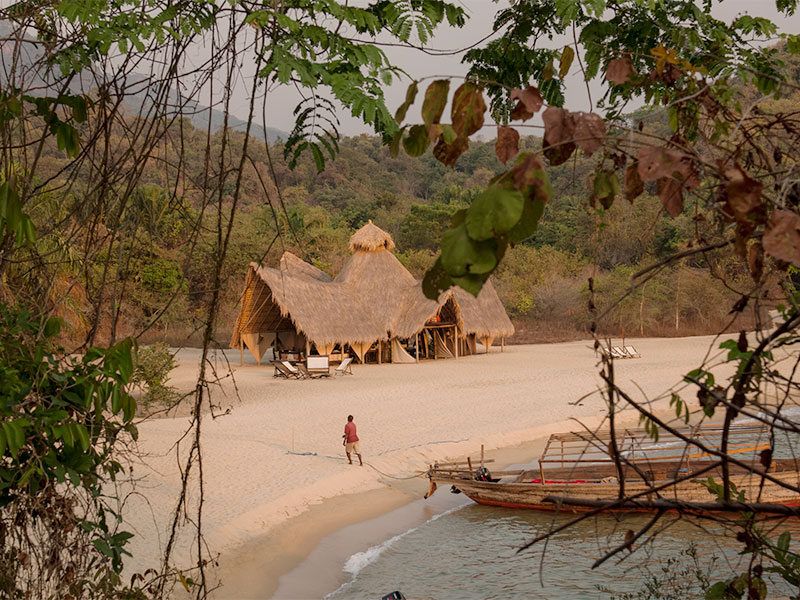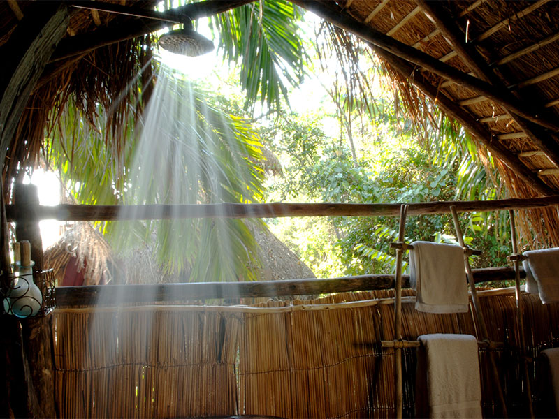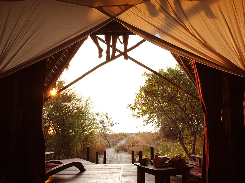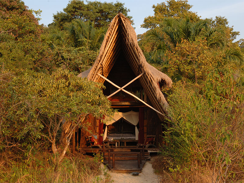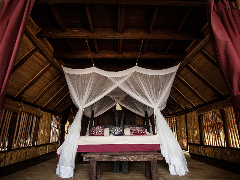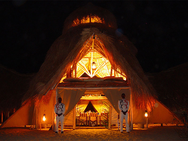 There are six 2-person tents under palm trees, simple but nicely furnished. The bathroom is behind the tent and there is a structure of grass and reed. Electricity through solar energy.