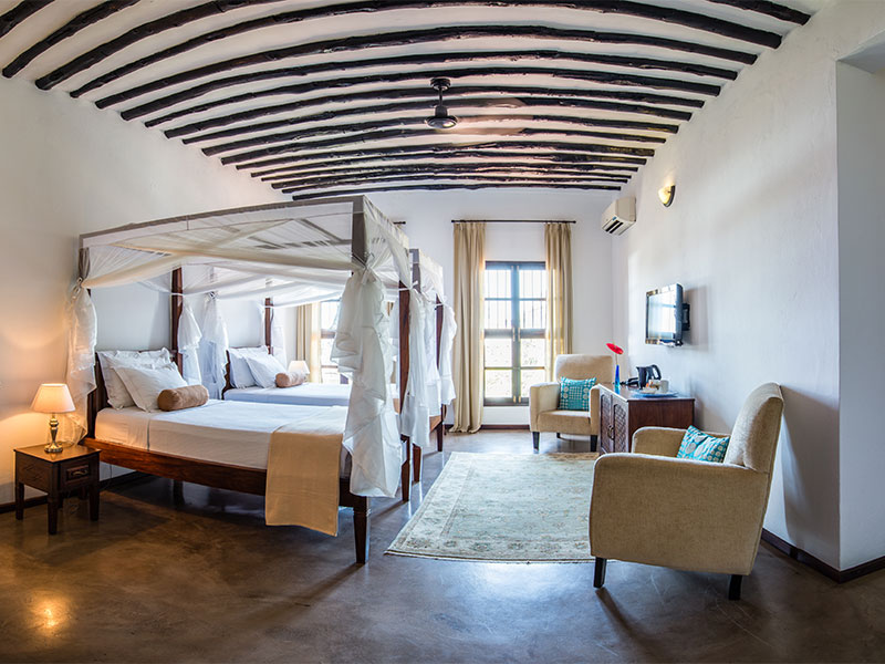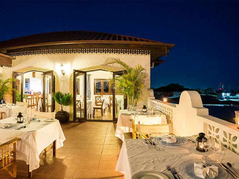 It is housed in a stately building with nice high ceilings. The decor of the spacious rooms is a blend of Swahili style and antiques. The rooftop terrace offers fantastic views over the old town.