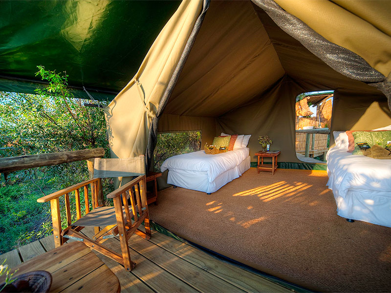 Oddballs’ Enclave can accommodate a maximum of 10 guests, in five twin or double bedded mini-Meru tents, making it a classic and intimate camp. The tents are on elevated wooden decks, each with a semi-detached private bathroom with an al fresco bucket shower, and hot and cold running water.