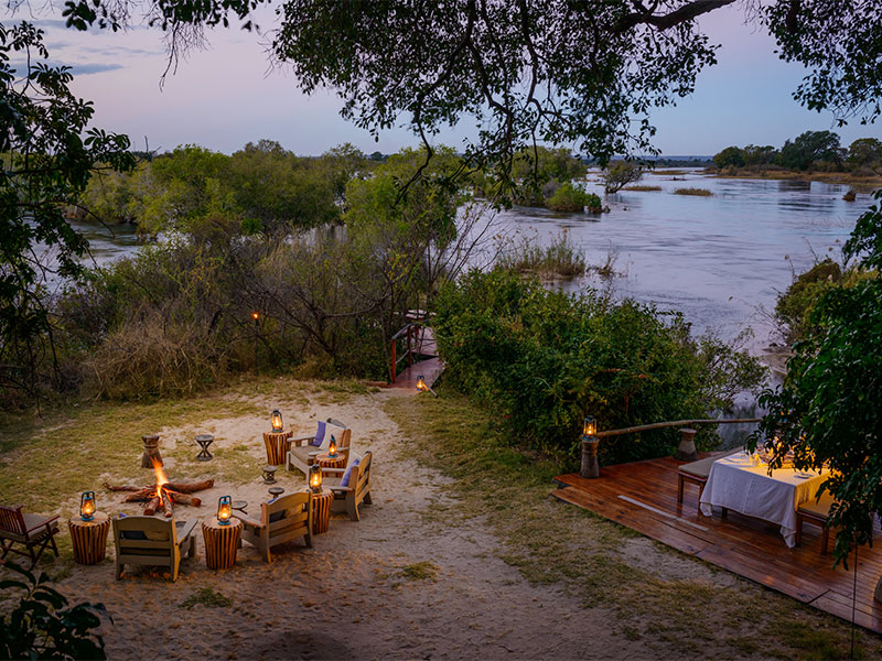 Sindabezi Island is an idyllic, exclusive camp on a private isle on the Zambezi River near Victoria Falls.