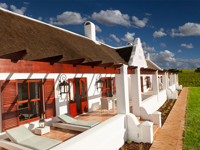 De lodges zijn gelegen op het idyllische wijngoed Aaldering Vineyards & Wines in Devon Valley Stellenbosch, eigendom van Fons en Marianne Aaldering. Deze met 5 sterren bekroonde lodges zijn luxe ingericht, in Cape Dutch stijl.