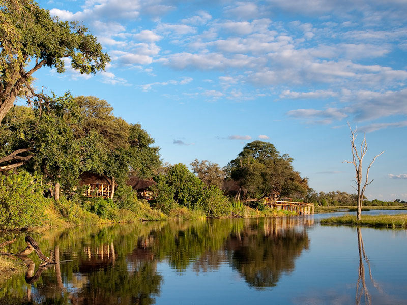 Het intieme Savuti Camp ligt in een geïsoleerd gebied, aan het Savute Channel die in 1980 stopte met stromen, waardoor het nu een grasvlakte is waar vele verschillende dieren huizen.