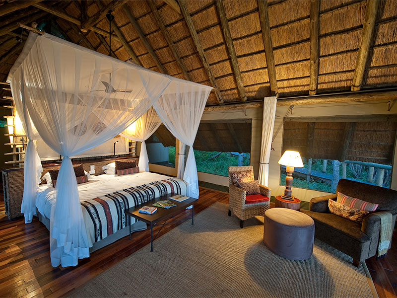 De accommodatie bestaat uit 7 grote tenten op houten vlonders, allen met een en-suite badkamer met douche, wastafel en toilet. 2 Tenten hebben een open badkamer met uizicht over het Savute Kanaal. Het kamp heeft een dineerruimte onder een rieten dak, een pub en een dompelbad, allen opgetrokken op een houten dek met een uitzonderlijk mooi uitzicht.