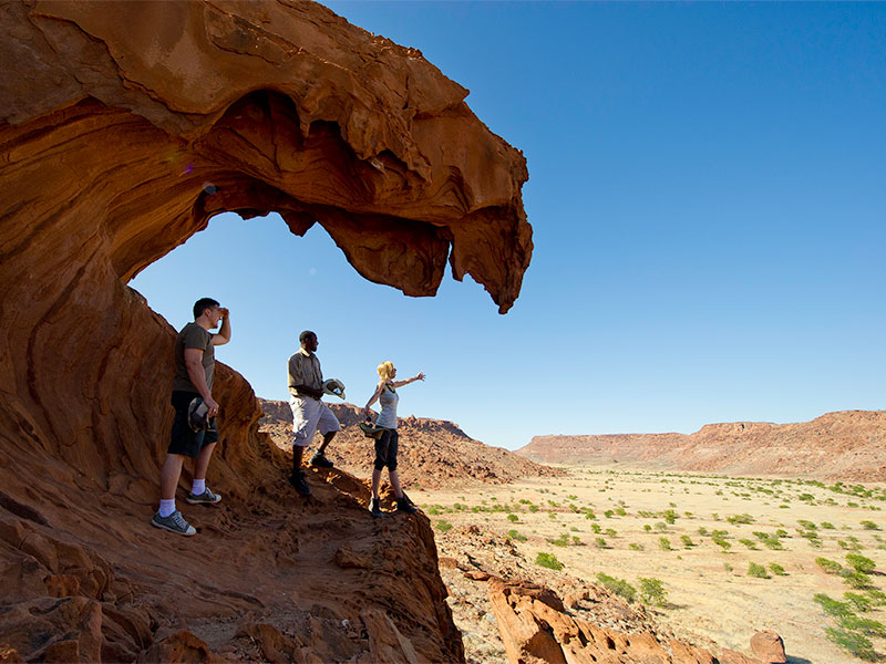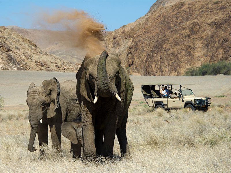De lodge is een perfecte uitvalsbasis om de regio met safarivoertuigen of te voet te ontdekken. Het landschap varieert van vlaktes gevuld met keien tot interessante rotsformaties. Dit is het territorium van de woestijnolifant: de kuddes kruisen dagelijks de rivierbedding op zoek naar water en voedsel. Hier komt u onder ander ook kudu, struisvogels, springbok en jakhalzen tegen.