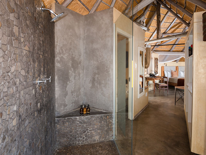 De luxe chalets zijn smaakvol ingerichte en beschikken over airconditioning, minibar, en-suite badkamer en een privé balkon met uitzicht over de vlakte van het Ongava Private Game Reserve, grenzend aan het Etosha National Park.
