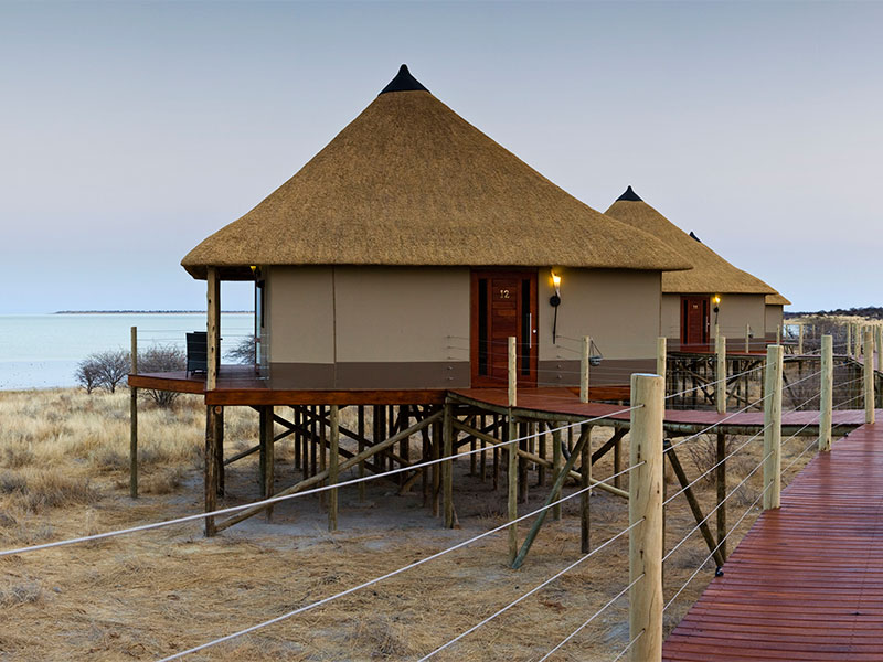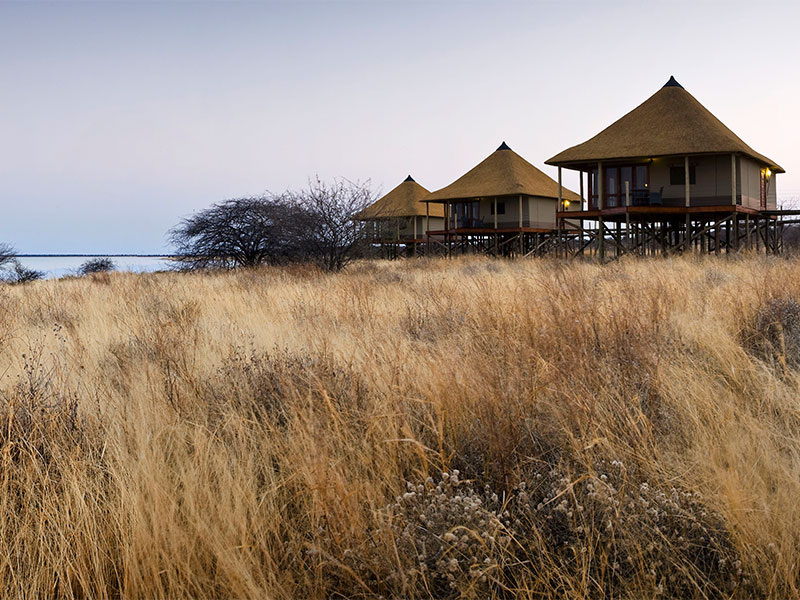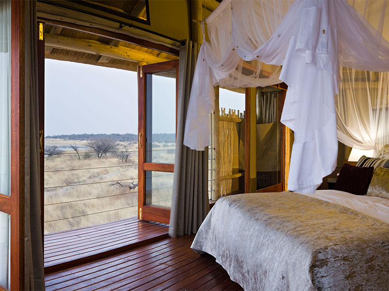 De accommodatie bestaat uit 15 rietgedekte chalets met canvas muren, gebouwd op houten platforms. Elke kamer is van alle comfort voorzien en hebben een spectaculair uitzicht over Etosha Pan.