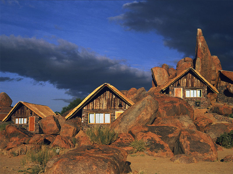 Verscholen tussen grote rotsblokken ligt deze sfeervolle lodge, bestaande uit 30 bungalows met rieten dakbedekking. Elke bungalow beschikt over bedden met klamboes, een aparte douche en toilet en een veranda met een zitje. In het hoofdgebouw, een oude boerderij, vindt u het restaurant en de bar met daarbij een terras en een klein zwembad.