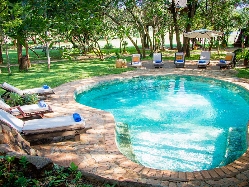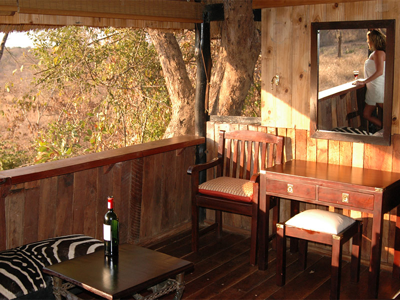 Het bestaat uit 7 op palen gebouwde chalets (Treehouse) en 2 Presidential Elephant Suites, allen met en-suite toilet/badkamer. Elk chalet is open aan de voorzijde en biedt uitzicht op een nabijgelegen waterpoel met schuilplaats waar regelmatig allerlei wild te zien is. In het centrale gebouw vindt u de eetgelegenheid, een bar, een kleine bibliotheek en een comfortabele lounge.