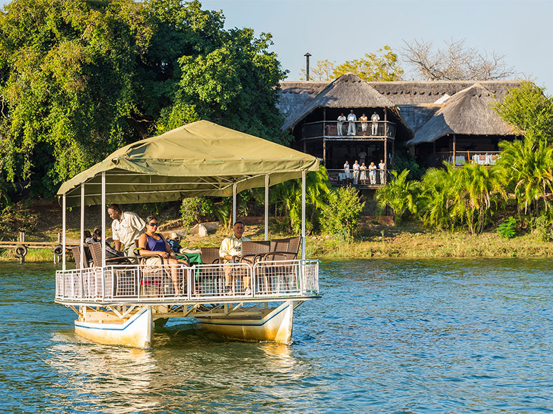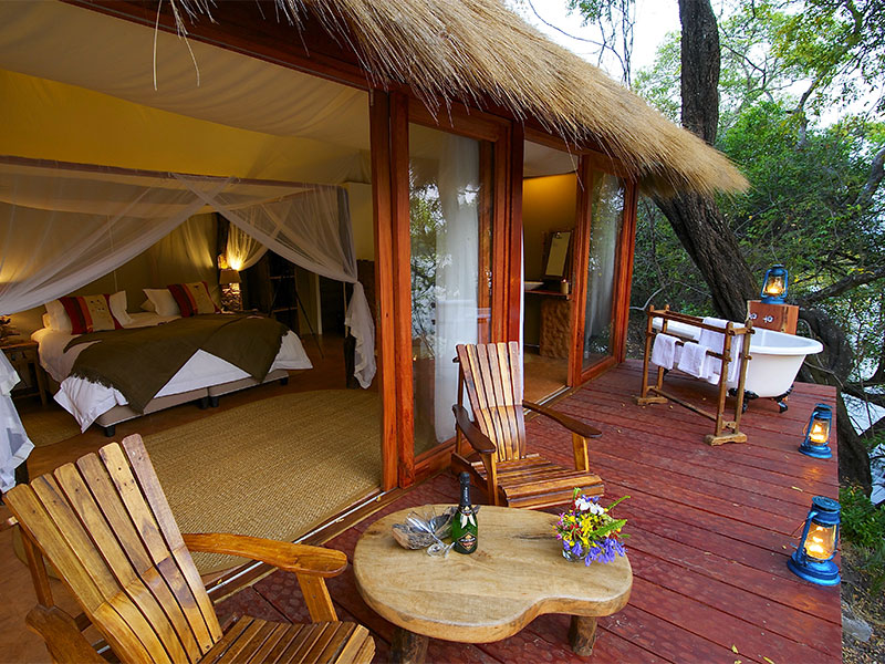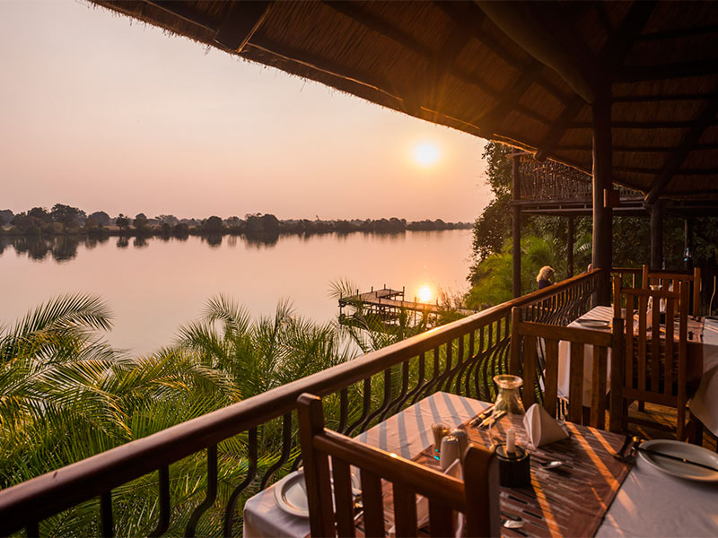 Vanaf de drie verhoogde veranda’s, het restaurant en het terras bij het zwembad kijkt u uit over de rivier en het nationale park aan de overkant. Maaltijden worden geserveerd in de boma (restaurant, bar en lounge).