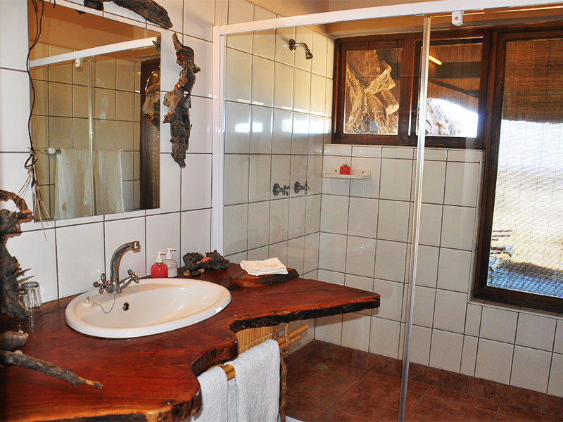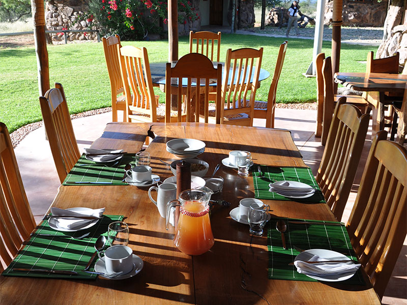 Het is een mooi gasthuis, gebouwd met natuurlijke bouwmaterialen en omgeven door ongerept landschap. Er zijn 8 dubbele kamers en 2 chalets, elk met badkamer en-suite. Verder is er een lounge/restaurant met open haard, een keuken en bar. U wordt goed verzorgd door een echtpaar met hun plaatselijke staf die verschillende Europese en Afrikaanse talen spreken. De tuin biedt schaduw door o.a. doornbomen en biedt uitzicht op een waterpoel die ’s avonds verlicht is, en waar wild en vogels komen drinken.