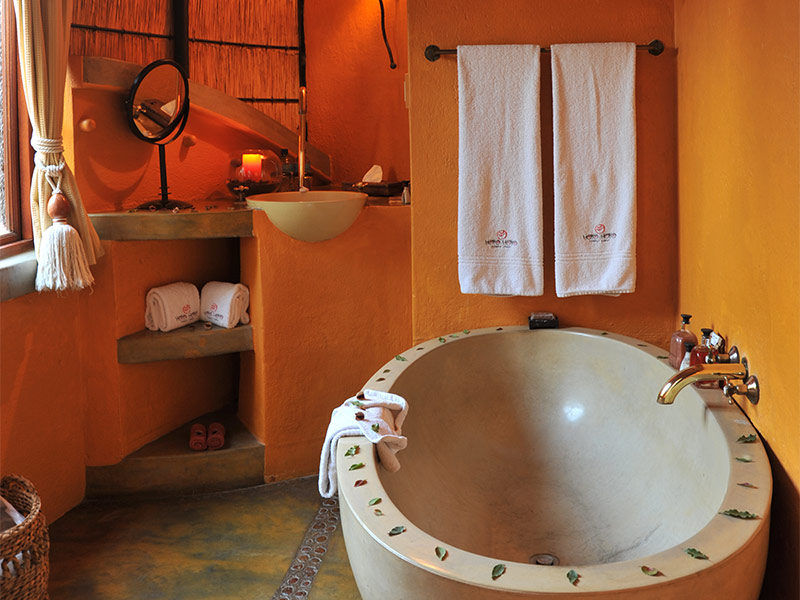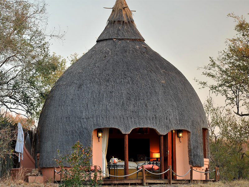 Hoyo-Hoyo is een originele lodge, bestaande uit 6 traditionele Tsonga hutten, die binnen verrassen met hun luxueuze comfort en mooie meubelen.