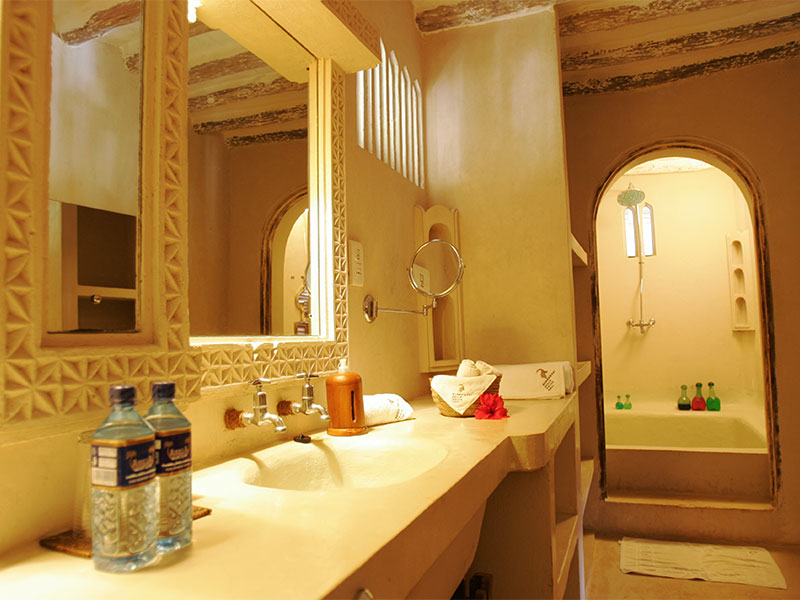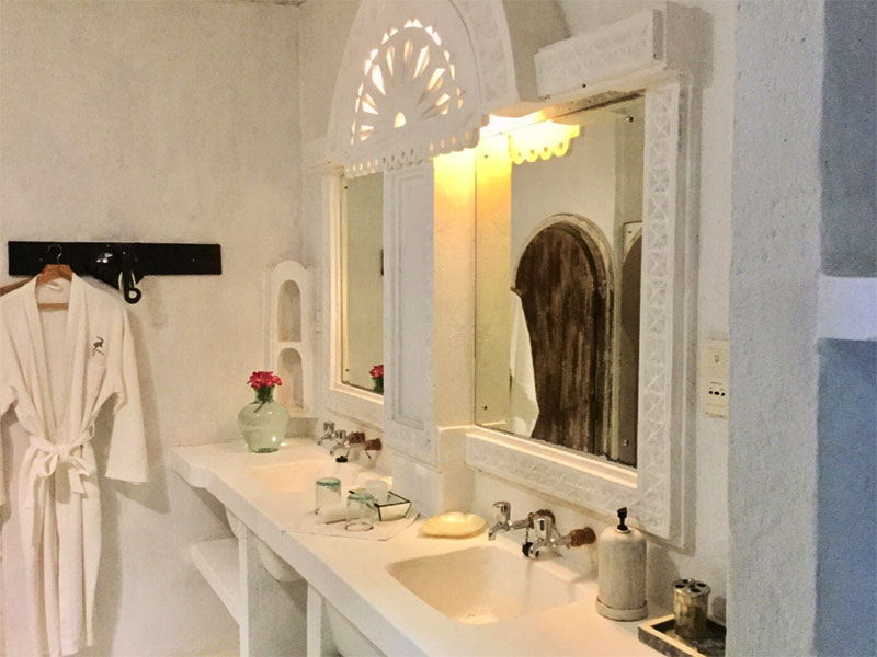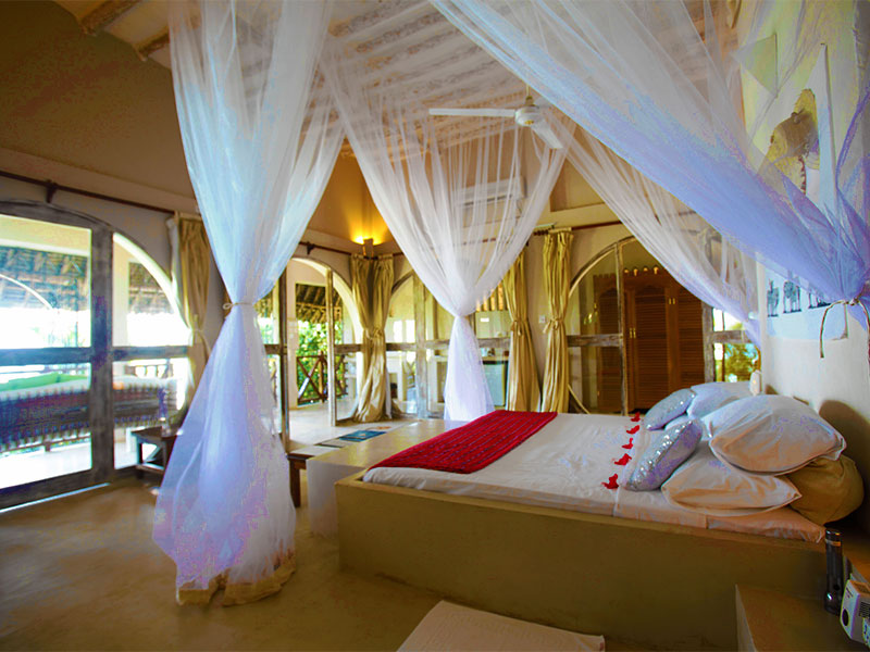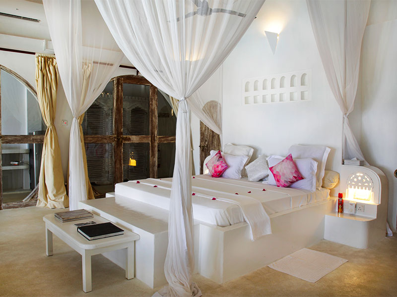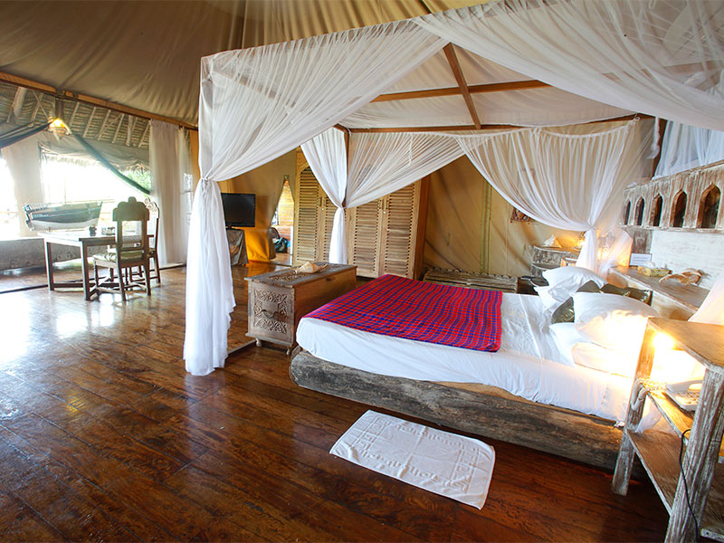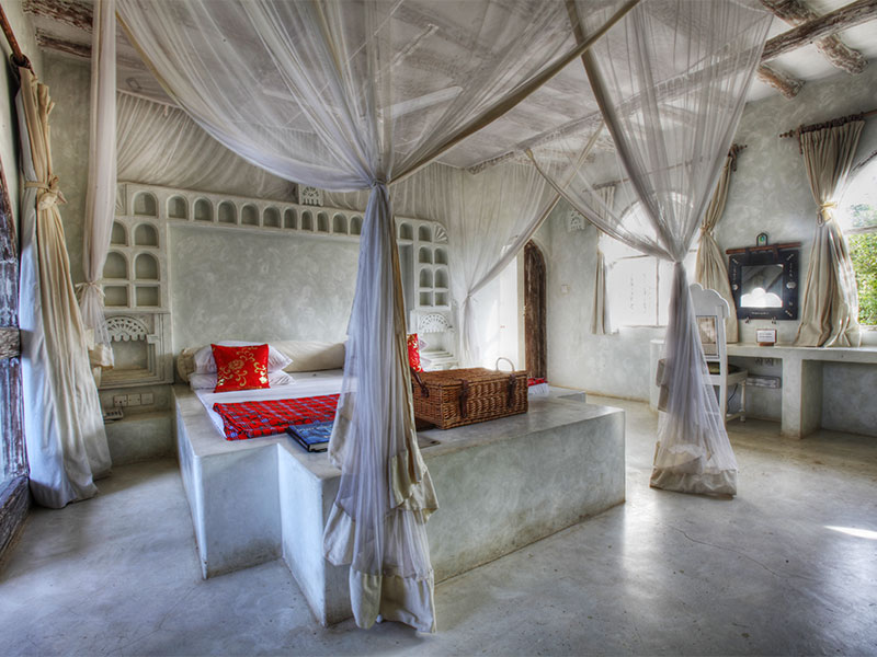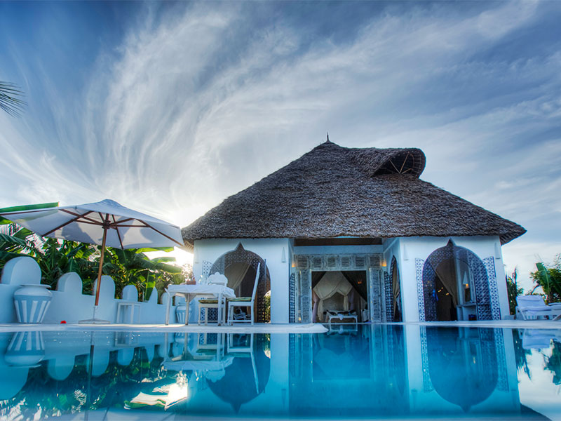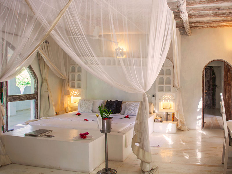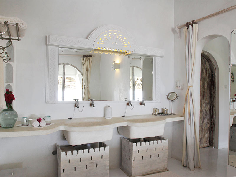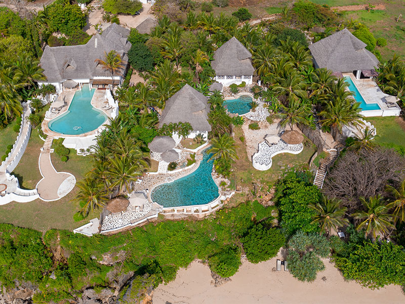 Het is gebouwd op een klif met uitzicht op de Indische Oceaan, midden in de ongerepte natuur. Msambweni is ontworpen in Lamu-stijl met prachtige witgekalkte details, hoge balkenplafonds van makuti-houten daken, lokale handgemaakte meubels, grote open ruimtes en prachtige decoratieve details.