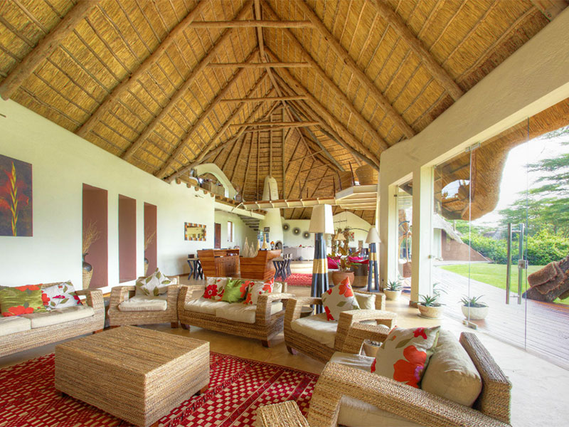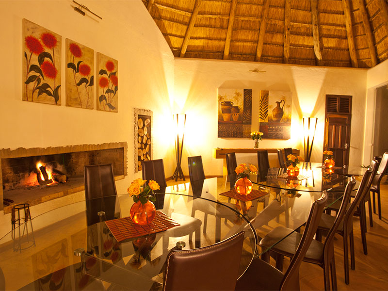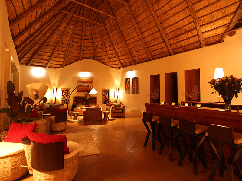 In het rietgedekte hoofdgebouw is een gezellige lounge met open haard en een riante veranda met een adembenemend uitzicht op de omgeving. Hier kunt u ook genieten van de bijzondere maaltijden met geselecteerde wijnen.