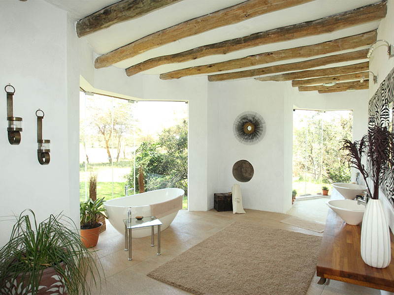 De in totaal vijf ruime cottages zijn karaktervol ingericht in verschillende stijlen een zijn een afspiegeling van de Afrikaanse omgeving. Elke cottage heeft een aparte zithoek met open haard en een grote badkamer met een dubbele wastafel, bad en douche. De grote ramen met panoramisch uitzicht geven een ruimtelijk gevoel en slechten de barrière tussen binnen en buiten.