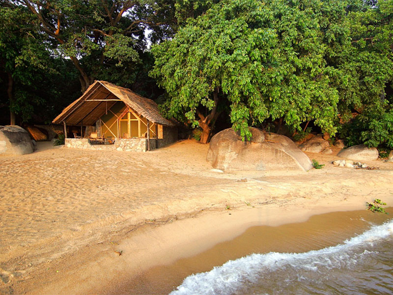the lodge lies hidden under large fig trees between two large granite rocks. It consists of 8 rooms, sheltered in 5 stone bungalows within a few steps from the beach. Through a small path, along the small swimming pool, you will arrive in the next bay where you will find 3 large tents. The light breeze from the lake will ensure your comfort even during the warmest days, and the thick rocks will make the bungalows cool down during the night.