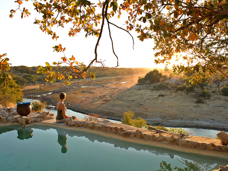 Vlakbij het kamp ligt een waterhole dat tijdens de droge periode duizenden dieren aantrekt.