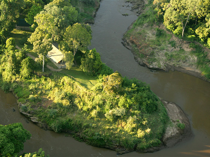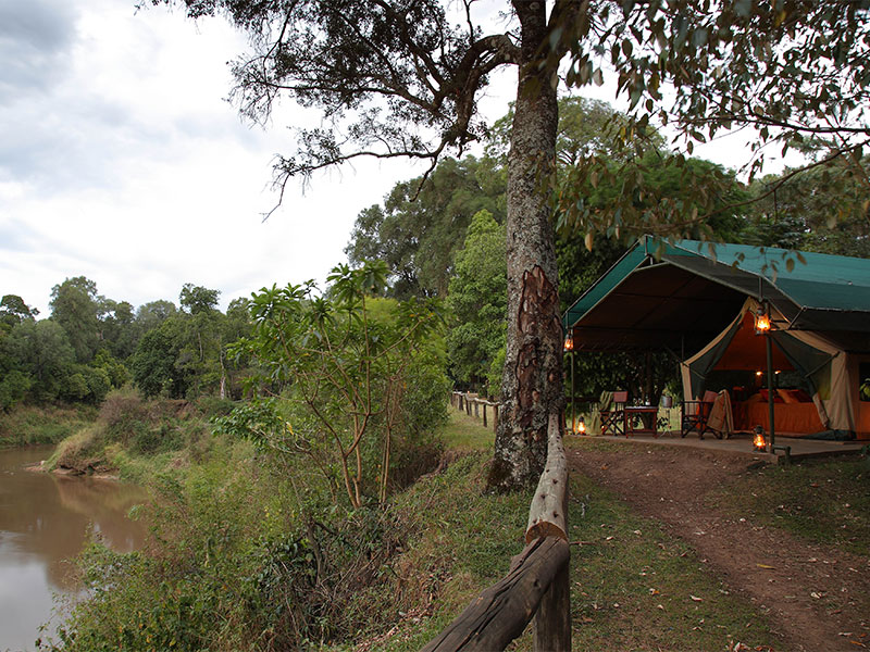 Een deel van de tenten staan langs de rivieroever, verscholen in het bos met vrij uitzicht over de rivier; anderen hebben uitzicht over de uitgestrekte vlaktes van de Masai Mara.