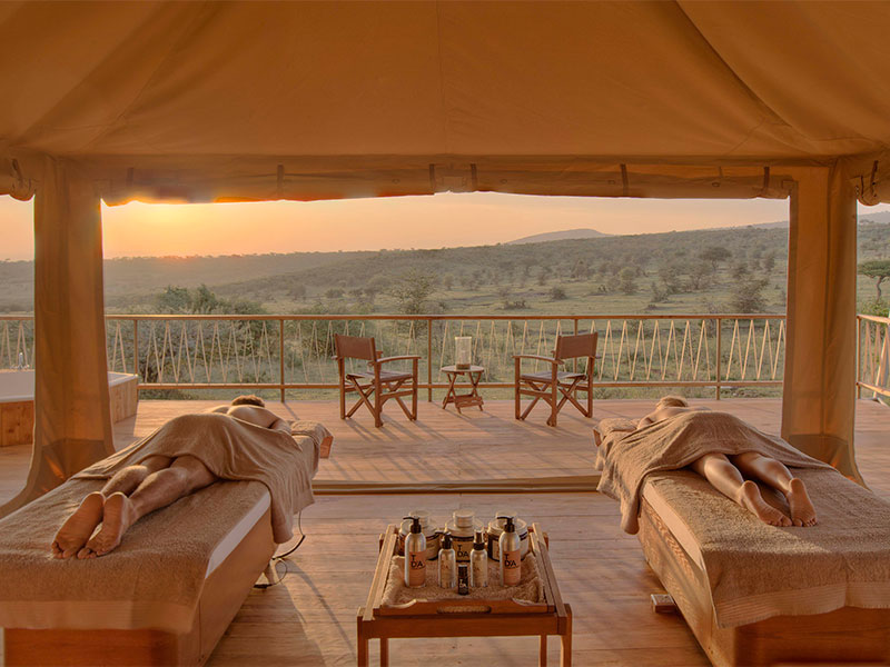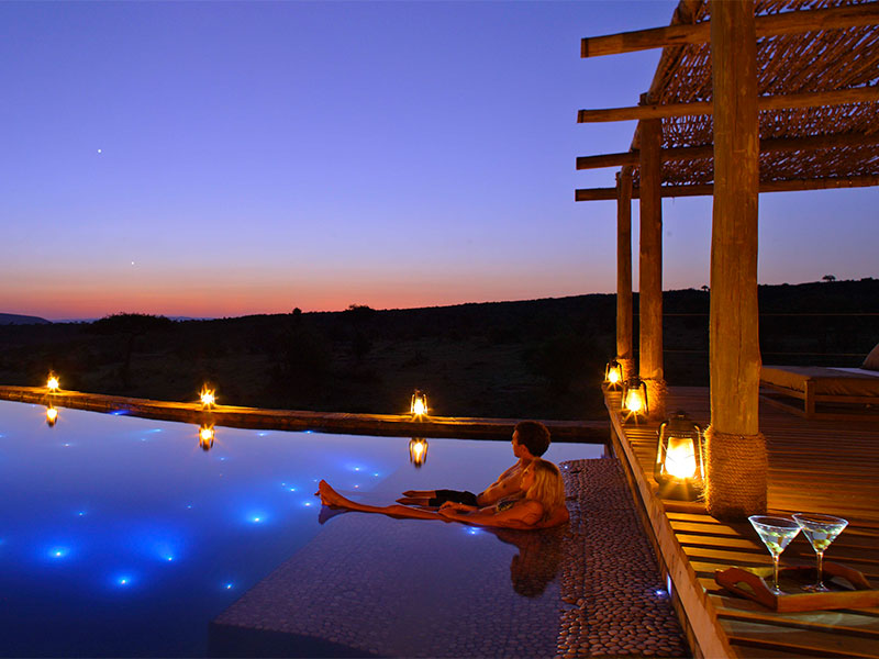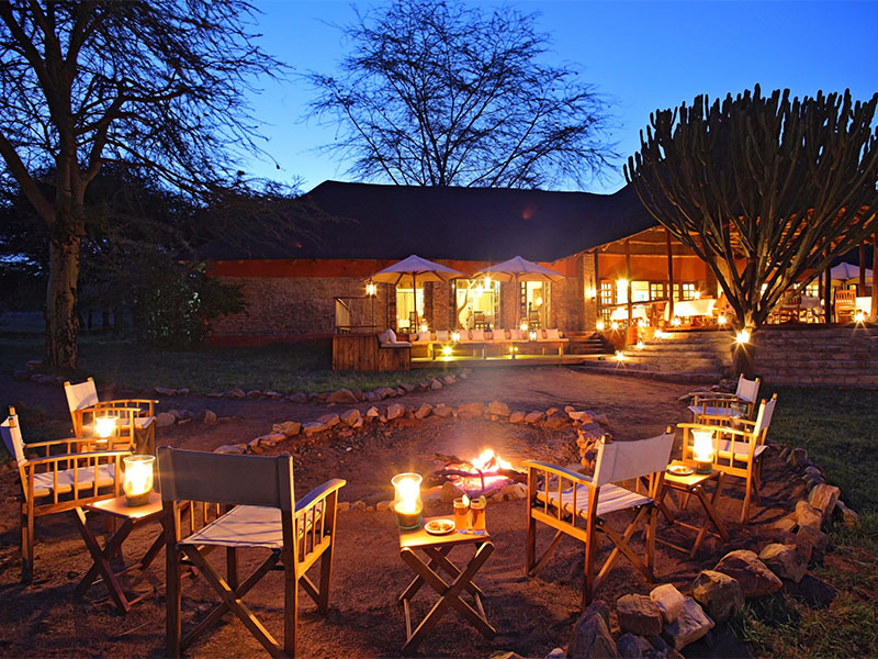 Na een uitstekend diner in het sfeervolle restaurant of op het overdekte terras kunt u bij knapperend kampvuur genieten van de sterrenhemel, met de geluiden van wilde dieren op de achtergrond.