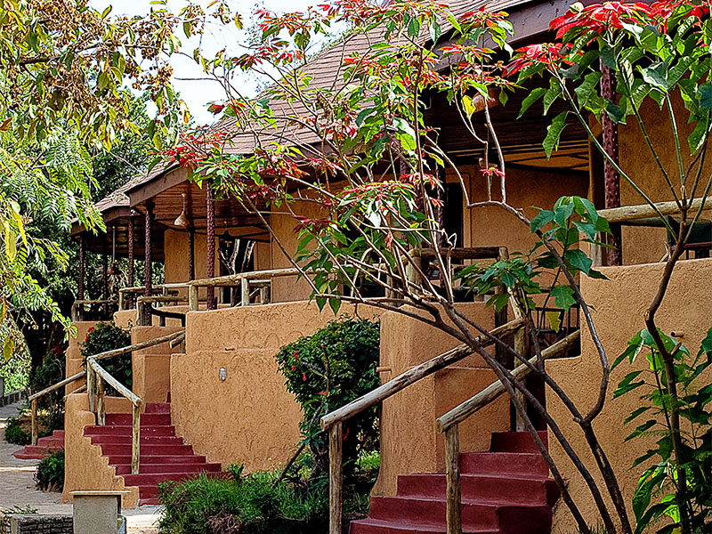In de architectuur van de lodge zijn elementen van de Masai traditie verwerkt. Alle kamers (77 standaard, 12 suites en 1 presidentiële) zijn gebouwd in ‘rondavel’-stijl, liggen verspreid aan weerszijde van het hoofdgebouw en zijn door middel van trappen bereikbaar. De kamers zijn in Afrikaanse stijl ingericht en beschikken over een eigen badkamer met douche en haardroger, een minibar en een veranda.