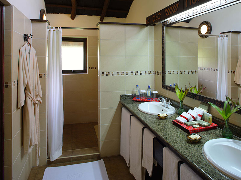 De 73 tenten zijn alle voorzien van elektriciteit en een en-suite badkamer met douche en toilet. Het ontbijt en de lunch zijn in buffetstijl, het diner is table d'hôte en kan zowel in het restaurant als buiten worden gebruikt.