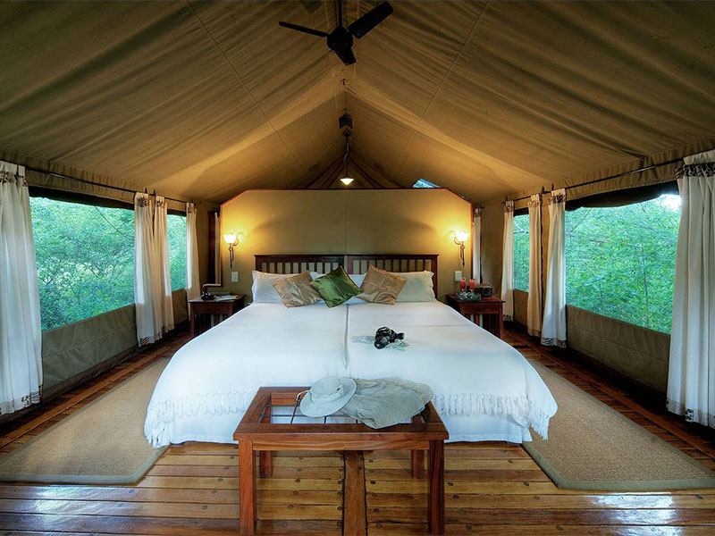 Tijdens uw verblijf komt u al in de sfeer van het 'game viewing'. Dit komt door de lokatie en de stijl van overnachten, namelijk in één van de 7 luxe safaritenten, gebouwd op een houten vlonder met eigen badkamer en een buitendouche, temidden van de schitterende natuur. Men heeft wandelpaden uitgezet, zodat u de omgeving te voet kunt verkennen.