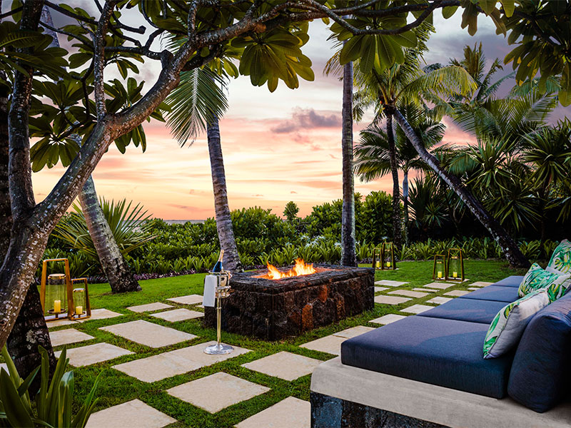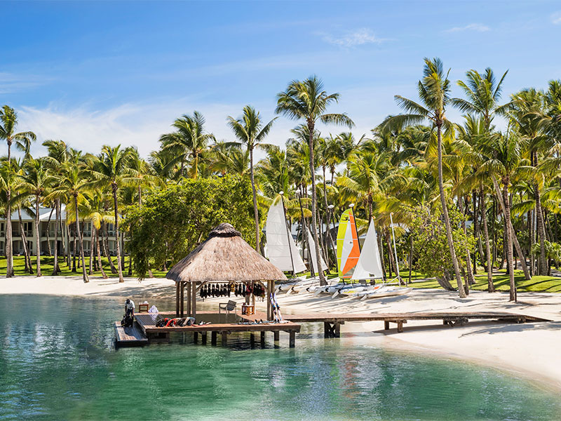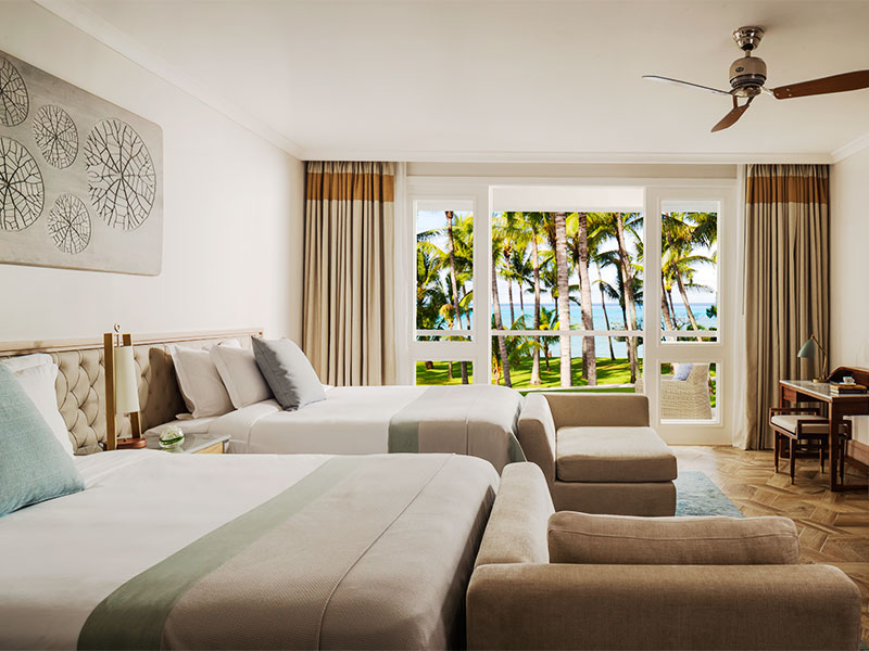 De 142 kamers en suites zijn gelegen rondom de uitgebreide tropische tuinen en hebben uitzicht op de lagune of op de oceaan, en liggen op de begane grond of op de eerste verdieping. Elke kamer en suite is luxueus ingericht met een ruime woonkamer met terras of balkon. De suites bieden 24 uur butler service.