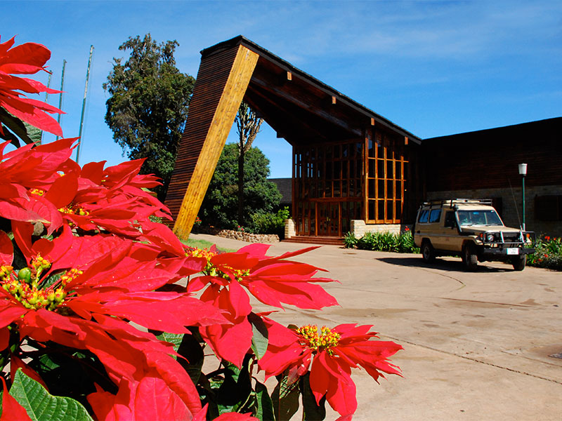 De lodge ligt op de rand van de krater op een hoogte van 2.286 meter, waardoor u kunt genieten van een adembenemend uitzicht.