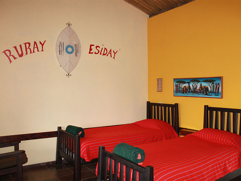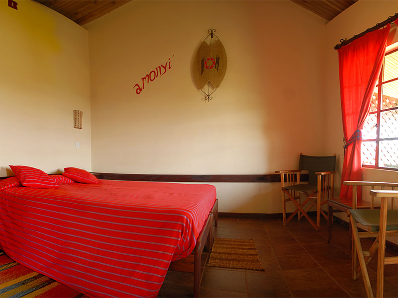 De lodge heeft 24 kamers geschakelde kamers, ingericht in Masai stijl, met elk een eigen en-suite badkamer en een balkon met uitzicht over het omringende bos. Hier kunt u in alle rust genieten van een drankje terwijl de zon onder gaat. De lounge is eenvoudig ingericht maar met een gezellige sfeer, mede door de 2 open haarden.