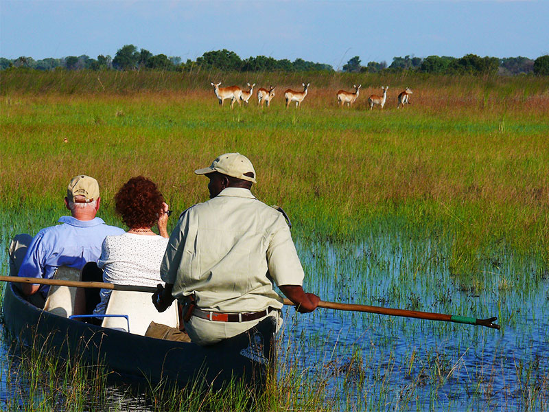 Het meest onderscheidend, ten opzichte van de andere accommodaties, is dat Camp Okavango (12 bedden) in een permanent watergebied ligt. Op de eilanden in de delta staan de prachtigste bomen: vijgen-, mahonie-, ebbenbomen en een aantal palmsoorten zijn hier algemeen.