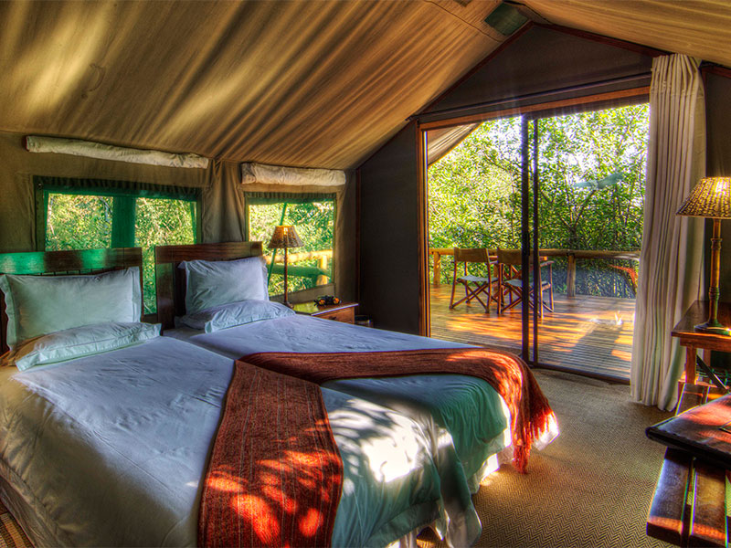 Op het terrein bevinden zich een zwembad met rondom ligbedden, diverse hangmatten waar u tussen de safari's door kunt uitrusten, een open lounge, een restaurant en een bar.