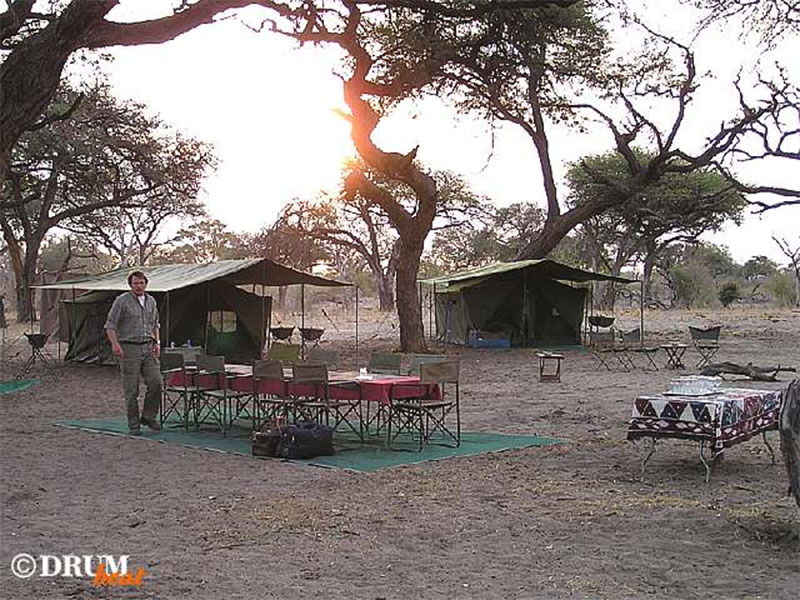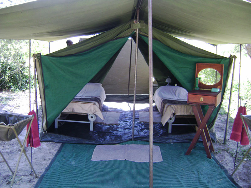 Deze klassiek ogende tenten zijn 3 x 3 meter in het vierkant en zijn voorzien van bedden. Aan de achterzijde zit een extra rits om makkelijk bij de 'bucket shower' en het 'bush toilet' te komen, welke apart achter uw tent worden geplaatst. Er is geen water om het toilet te spoelen, maar een schepje en een beetje zand doet wonderen. De emmer van de douche wordt door het kamp personeel gevuld. De kok en het kamp personeel reizen ieder dag vooruit om het kamp op te zetten.
