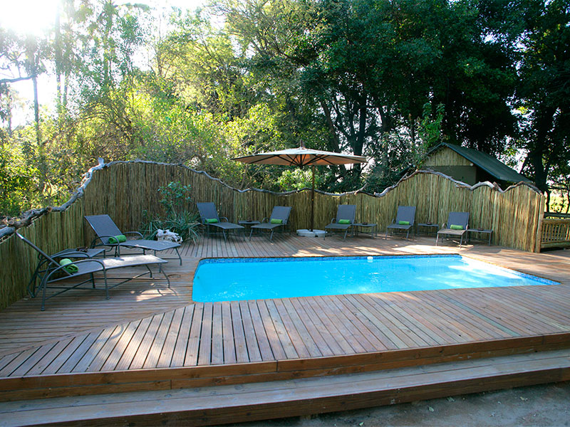 Na de game drives is het heerlijk vertoeven in het aanwezige zwembad.