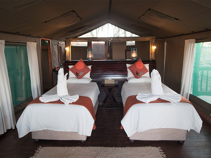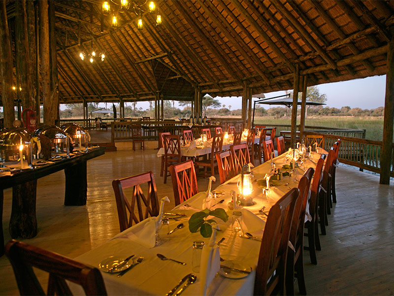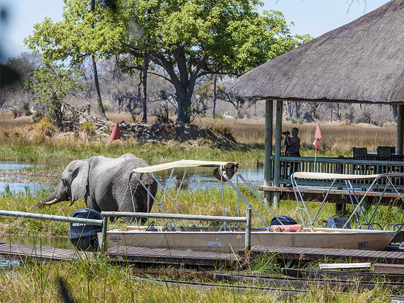 Het kamp is 100% eco vriendelijk door gebruik van de nieuwste technieken. Het bestaat uit 16 luxe meru-tenten met en-suite badkamer en een veranda met prachtig uitzicht. Het verhoogde, rietgedekte hoofdgebouw met daarin een bar, lounge en restaurant heeft een grote veranda met uitzicht op de Boro River en Chiefs Island. Verschillende kleine lounges op verschillende niveaus versterken het gevoel van comfort, privacy en ruimte.