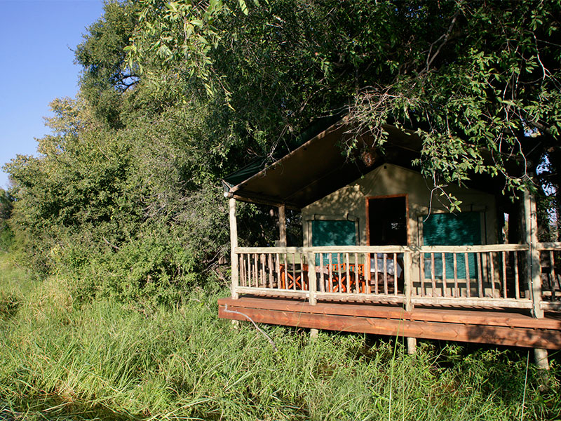 Moremi Crossing is een tented camp, gelegen op een met palmbomen bezaaid eiland aan de rand van het Moremi Game Reserve.