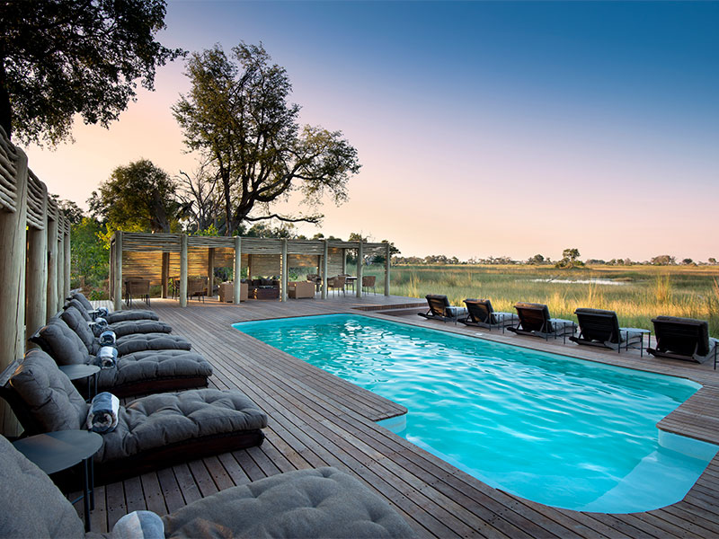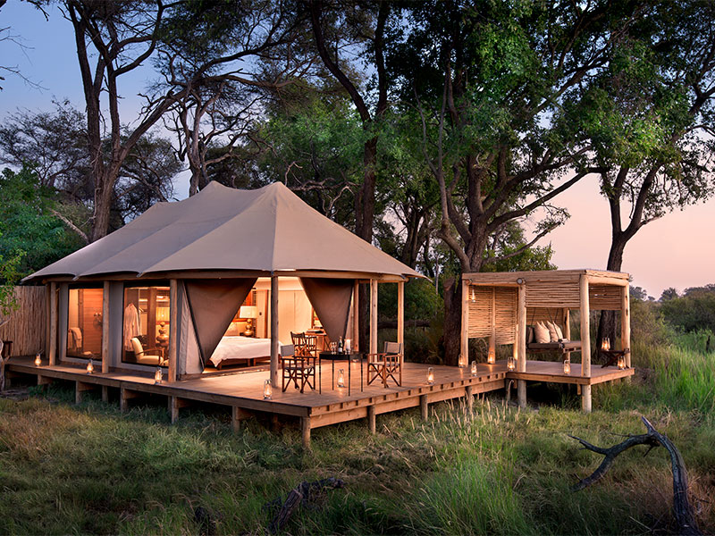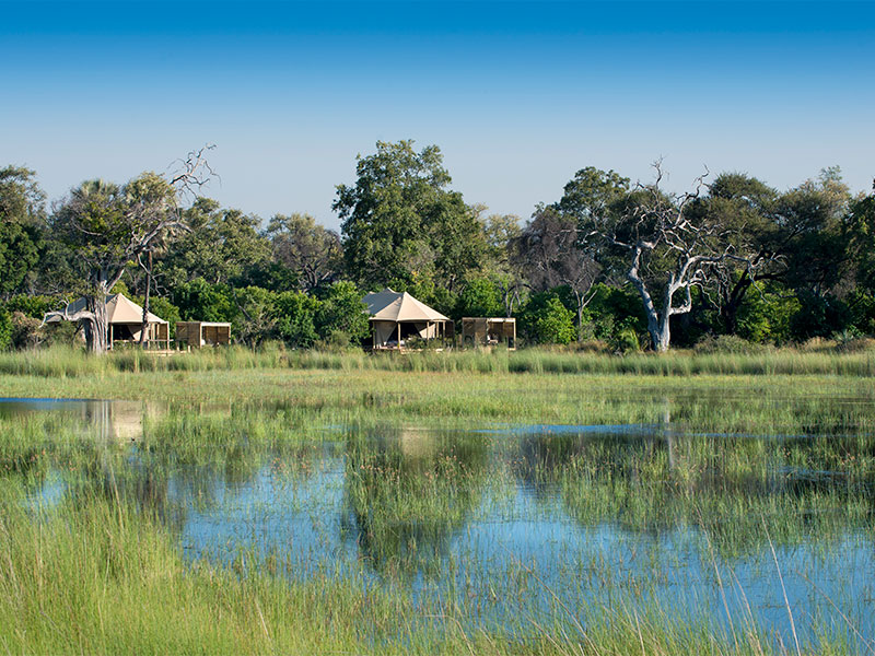 Het elegante Nxabega Okavango Safari Camp ligt aan de rand van de Okavango Delta in een 7000 hectaren groot concessiegebied op de grens met het Moremi Game Reserve.