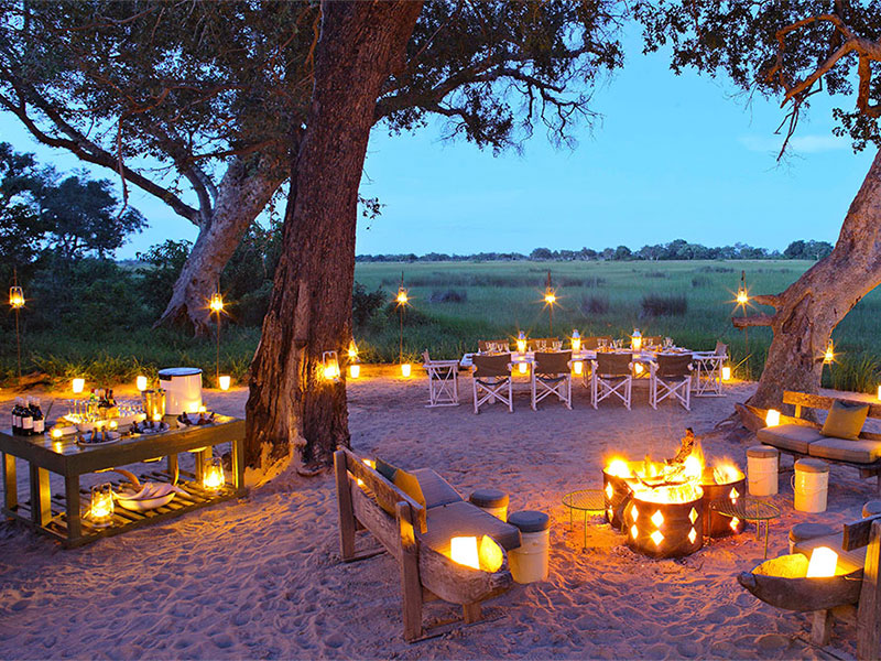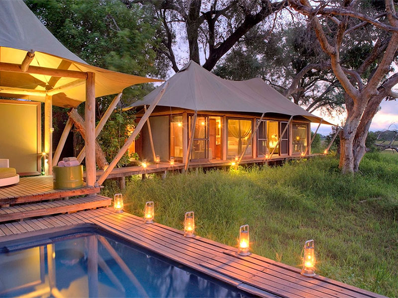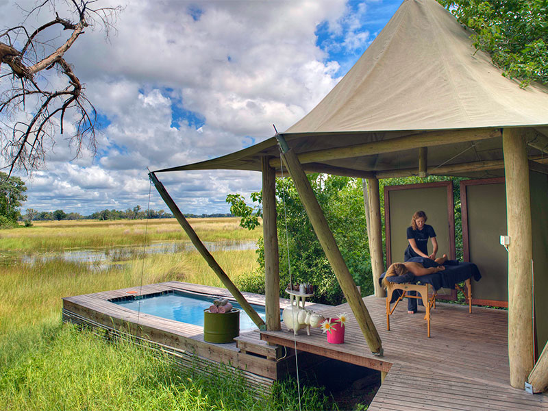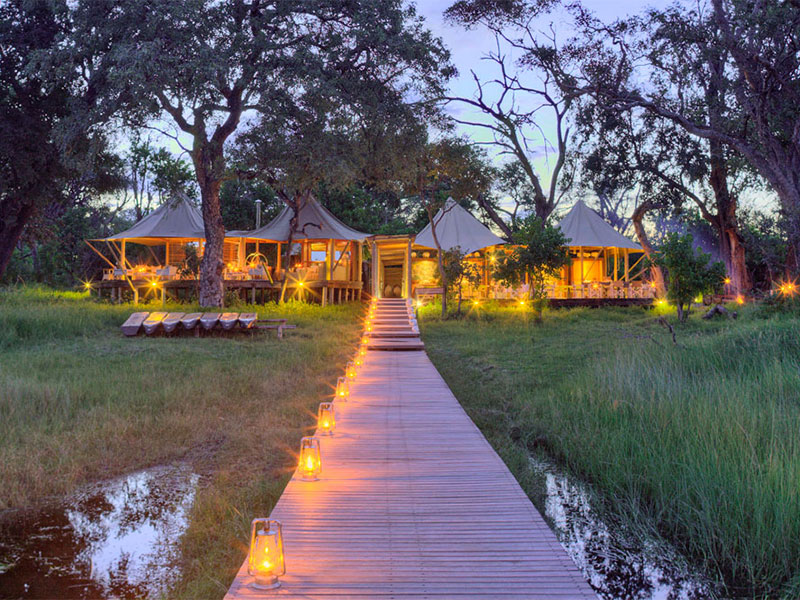 Het kamp kijkt uit op een permanente lagune van de Okavango Delta en wordt omringd door 25 000 hectaren ongerepte wildernis, die slechts door 18 gasten wordt gedeeld.