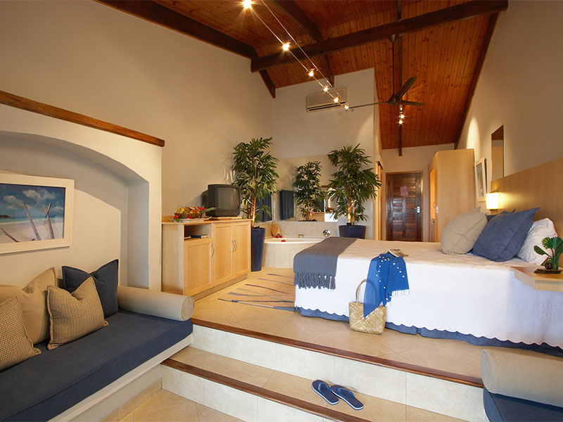 Het hotel beschikt over 22 standaard kamers, 18 Superior kamers en 12 Junior Suites (Black Parrot). De standaard kamers liggen op het verhoogde deel omgeven door de tuin, terwijl de Superior kamers en de Junior Suites meer op strandniveau liggen.