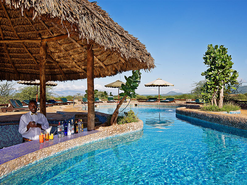 De Samburu Sopa Lodge ligt in het noordoosten van het Samburu National Park, aan de oever van de Uaso Nyiro Rivier.